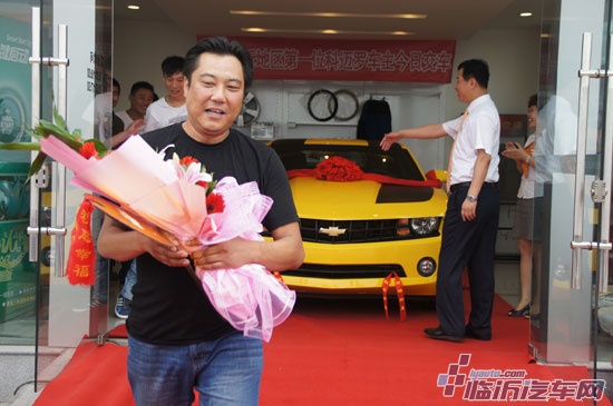 【临沂汽车网讯】7月27日上午11时08分,临沂市第一辆进口雪佛兰科迈罗Camaro -俗称大黄蜂交车仪式在位于罗庄区远通汽车超市的雪佛兰凯华4S店进行。临沂市第一位大黄蜂车主张先生兴奋地接过凯华雪佛兰总经理曹劲武递交的钥匙和鲜花,迫不及待地在爆竹声中和远通人的喝彩鼓掌声中将车开出展厅。