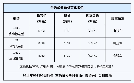 景逸尚有现车 买车享4000元钜惠加装饰