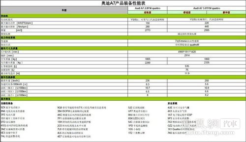 奥迪A7配置表首曝光 或年底引入国内