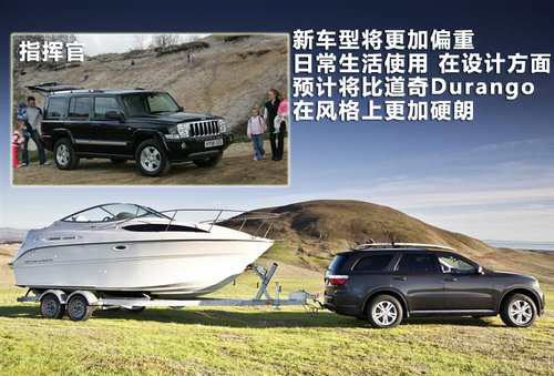 2005年上市的Jeep Commander(指挥官)曾经是Jeep家族中售价最高、尺寸最大最豪华的7座旗舰车型。因市场表现没有达到预期以及受到成本等多重因素的影响于2010年末停产。近日,随着菲亚特与Jeep的“东家”克莱斯勒集团合作的深入,Jeep品牌将借东风快速发展。据海外媒体报道,Jeep预计将在2013年推出一款7座位全尺寸大型豪华SUV ,与道奇共享平台。这款新车定位将超过已经停产的Commander(指挥官),偏重城市使用,将更豪华舒适,这款车型将成为Jeep家族全新的旗舰。但最终是否会沿用Commander(指挥官)的名字目前还无法确定。
