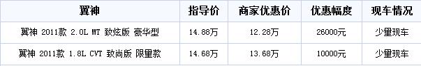 市场行情:笔者从上海东南三菱汽车4S店了解到,为迎接国庆,目前店内针对三菱翼神部分车型有特价优惠,2.0L MT豪华型最高可享受现金优惠达2.6万元。