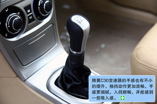 中控台的设计和布局非常利落,各种控制键的操作也都比较顺手,带有翻盖的储物格使用起来也更加安全。此外,腾翼C30多处都进行了镀铬包围处理,营造出了不错的视觉效果。