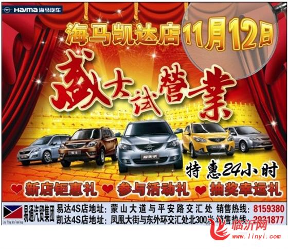 临沂海马凯达4S店11月12日邀您共享试营业盛惠