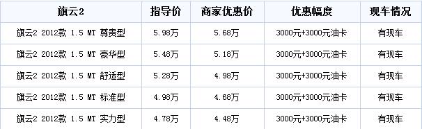 购2012款旗云2 优惠3000元送3000元油卡