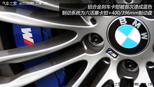 透过轮毂辐条的缝隙很容易发现那带有M标识的蓝色制动卡钳,这可是宝马第一次在这里喷漆。相比视觉效果更出色的红色与黄色,蓝色显然是为了能和品牌主色相统一。当然,这里还不仅仅是喷漆那么简单,制动卡本身还使用了全铝材质以减轻重量。推动制动卡钳运动的是六个活塞,搭配前400毫米、后396毫米的刹车盘似乎已经足够用了,想想1系M Coupe才只配了单活塞。