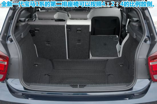 在前排空间大体保持不变的前提下,新一代1系的后备箱和后排的腿部空间提升明显,以后备箱为例,新1系行李箱储物空间扩大30L达到360L,同时后排座椅在需要时还可按4:2:4的比例放倒,以进一步提升储物空间。
