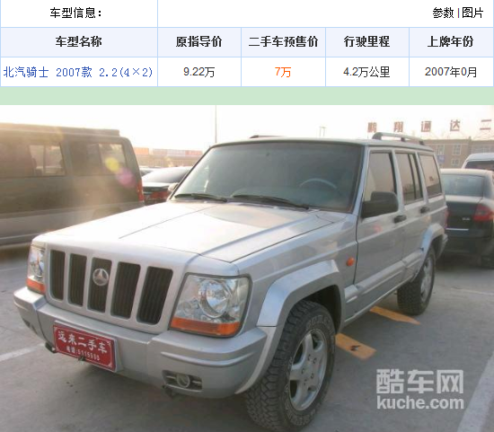 编辑点评:北京汽车制造厂有限公司是中国汽车工业发展的先驱之一,集北京汽车工业五十年之大成,是北京五十年汽车工业发展的结晶,是北京汽车民族品牌的代表。骑士是北京汽车制造生产的一款SUV车型。北汽骑士是一款从外观到结构都与JEEP2500/2700完全相同的SUV。最大的不同点在于它装备的发动机不同。骑士彻底抛弃了使用近三十年的498系列发动机,换装了国产的采用丰田技术的4G22D4发动机,这款发动机稳定性好通用性很强。大幅度改进后的4G22D4应该更加成熟。骑士是半承载式车身,它在承载式车身的基础上加上了两条多层钢板复合式的纵梁。材料上讲此纵梁的钢材是加入稀有金属材料(钼铁)的合金钢,一般在军火制造中才使用,强度很高(一般的钻头难以打动),使得车身的强度得以一定程度上加强。
