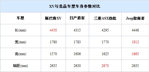 XV与竞品车型车身参数对比
