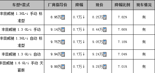 丰田威驰优惠7000元现金 现车充足