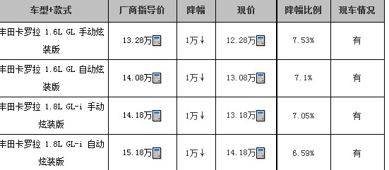 丰田卡罗拉现金优惠1万元 现车足!