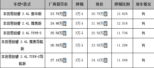 近日,汽车编辑从临沂地区东风本田4S店处获悉,近期购买思铂睿,可享受3万元的现金优惠。现车方面:店内目前有少量黑色现车,其它车型需要预定,定金10000元,约两周后提车。店内有试驾车,可赏车试驾,对该车有兴趣的朋友不妨到店详询。