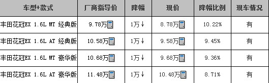 现在购买花冠EX可享现金优惠10000元。现车方面:目前店内现车充足,颜色齐全。店内有试驾车,可试乘试驾。感兴趣的朋友不妨到店详询。