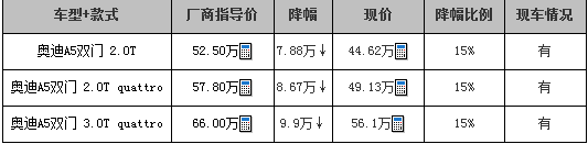 奥迪A5 8.5折销售 贷款补贴2.5万!