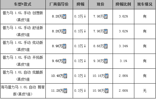 海马普力马优惠3000元 目前现车足