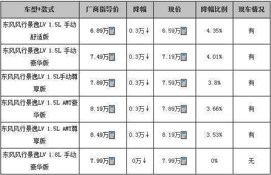 景逸LV目前购车优惠3000元现金,店内有现车,车身颜色为灰色、白色。购车订金5000元,提车需等待3周。喜欢该车的网友可到店试驾详询,并能得到进一步优惠。