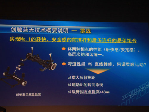 马自达在运动细胞在创驰蓝天技术里同样得到了延续,SKYACTIV-CHASSIS的副车架尺寸和强度有了不少提升,有助于提升车辆的极限,同时对舒适性也有一定的改善。此外后悬挂上的纵臂固定点提高了43mm,这样在通过颠簸路时候上升角度是一个向后的力,这样对车内人员的冲击感会降低很多。