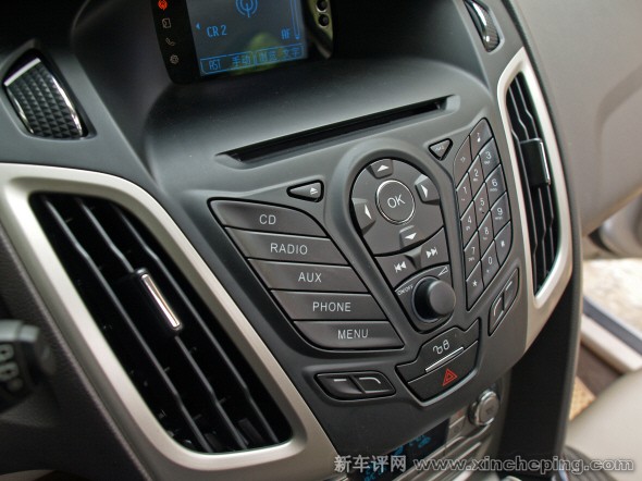 除了最低配,1.6款式买家也能享受到福特的SYNC系统,可通过语音指令完成各种操作。但因为音响配备不同,各自的中控台卖相有所不同。2.0顶配的中控面板为SONY音响的黑色烤漆面板,按键设计也很简洁,新福克斯1.6则直接引用新嘉年华上的按键面板,保留欧洲车传统的数字按键设计。这两种界面给人的使用感觉很不同,打个比方,前者像现在流行的智能手机,后者则类似一部很有设计感的全键盘手机。