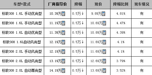 从临沂地区标致汽车经销商,临沂睿狮汽车销售服务有限公司了解到,目前店内308现车较为充足,现在购买标致308可享受5000元优惠。店内有2.0L自动挡试驾车提供试乘试驾服务,感兴趣的朋友不妨到店内了解详情。