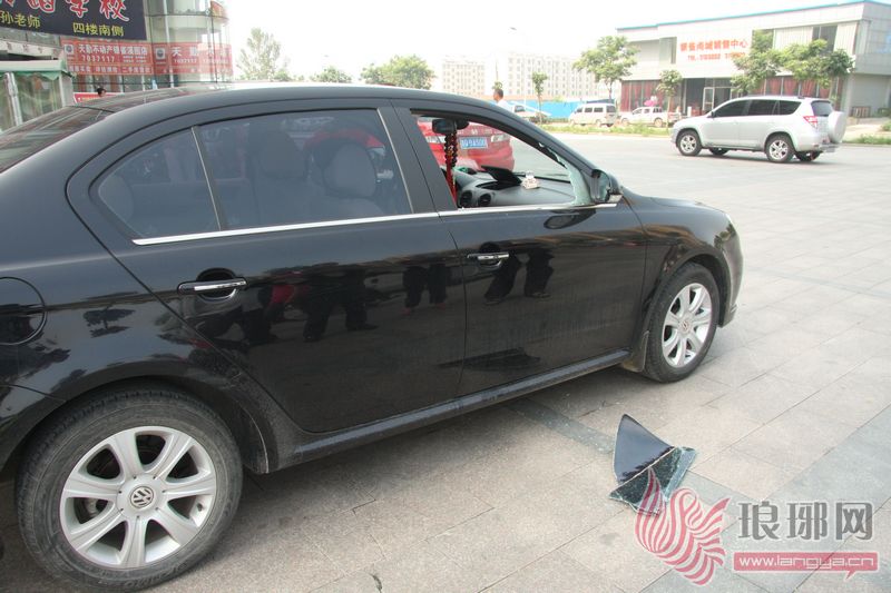 上午9时许,记者来到开阳路与琅琊王路交会处的银雀溪园小区,只见小区外的停车场上围着许多市民,记者看到现场比较狼藉,到处都是被敲碎的玻璃。现场处,一辆停放在停车场里的黑色大众轿车的右前车窗破了一个窟窿,玻璃碎成了“蜘蛛网”,随便扔在地上。它的前面一辆白色的丰田轿车副驾驶座旁的车窗也空空如也,车厢内均被翻弄过,车内碟片、抽纸、杂志、纸袋到处都是,一片狼藉。