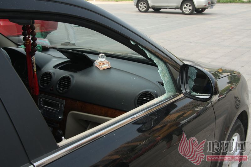 一车的右前窗玻璃被砸。