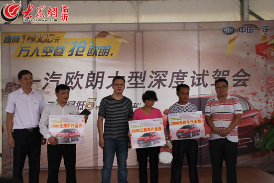 大众网临沂8月26日讯(记者 徐传文 实习生 张婷婷 黄梦娜)25日11点,以“抢!抢!抢!万人空巷抢欧朗”主题深度试驾会在河东远通超市试驾场举行。一汽轿车销售有限公司华北区域市场部陶艺经理、徐博经理、临沂国华奔腾4s店总经理武强、临沂宝华奔腾4s店执行总经理杨丙东及部分意向客户参加了此次深度试乘试驾活动。据悉,活动当天取得订交车41台的好成绩。