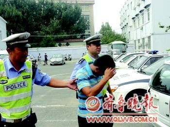 ◥交警将魏某带回石河岭中队。 本报记者 张泰来 摄