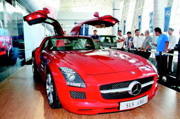 第六届魅力临沂精品室内车展,奔驰跑车吸引参观者眼球。记者 徐升 摄 (资料片)