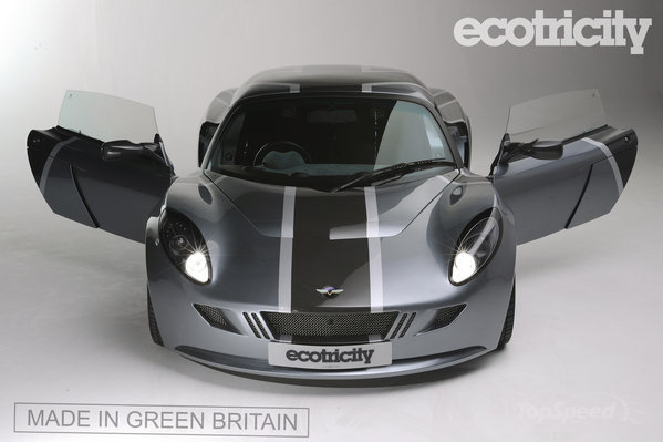 据国外媒体报道,英国知名能源公司Ecotricity改造的电动汽车“复仇女神”曾于九月份摘下英国电动汽车“陆地速度王”桂冠。该款“复仇女神”电动跑车是Ecotricity公司根据一辆莲花跑车改造而来,车长3.816米,整车质量1166千克。颜色以黑、灰为主体,黑色高亮成英国国旗的米字。