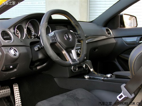 传动部分,与这台6.3L发动机匹配的7速MCT变速型,其提供了4种驾驶模式可选,在Sport Plus以及手动模式下,换挡时间仅为100毫秒。另外根据官方公布的数据,C63 AMG Coupe Black Series百公里加速时间不到4.2秒,极速达到300公里/小时。