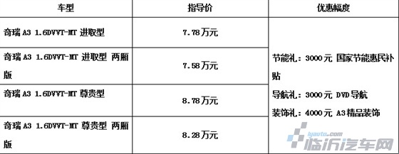 临沂奇瑞A3新春购车三连送