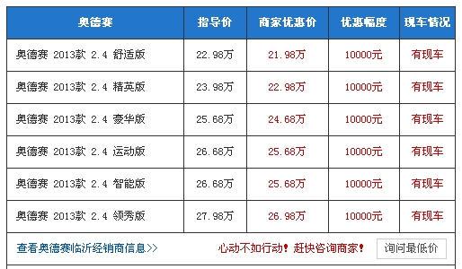【临沂网汽车】奥德赛融合了家用车的理念,外形也十分运动。是一款宜商宜家的车型。近日,编辑从临沂广汽本田翔宇旗帜店了解到,现购买2013款奥德赛全系可享受现金优惠1万元现金,送万元大礼包,先到先得。有意向的朋友可致电咨询经销商。