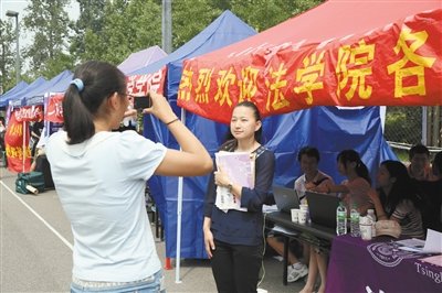 记者在志愿者服务点碰到了与父母一起从湖北黄冈来的新生王子愉。他以674分的成绩考入了计算机系,本来他准备响应学校号召自己来报到,“我高二时参加的夏令营带我们来北京参观过清华,我觉得自己独立过来报到一点问题都没有。”但携带的生活用品太多,父母担心他一个人在路上搬运不方便,还是一起过来了。“我们也想参观一下中国这么知名的高等学府。我们那里难得出一个能考上清华的学生。”王子愉妈妈骄傲地说。
