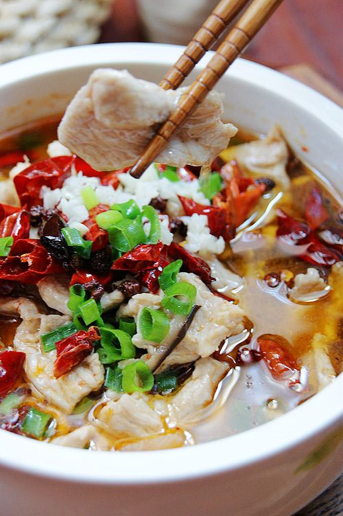 12. 将烧至9成热的热油均匀浇在肉片上即可。
