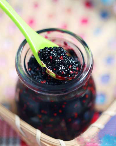 做法:先将白砂糖放入锅中加少许水,用文火煎熬至粘稠,再加入干桑椹末,调匀。然后继续煎熬,直至用铲子挑起成丝状,不粘手时,停火,将糖倒在涂有食用油的盘中,待稍凉,将糖切成小块,即可食用。