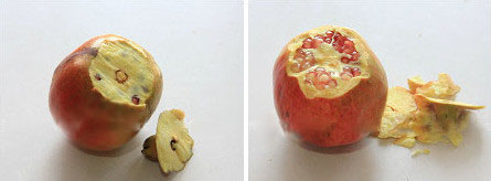4、顺着划痕轻轻一掰,石榴就被轻松地剥开了。