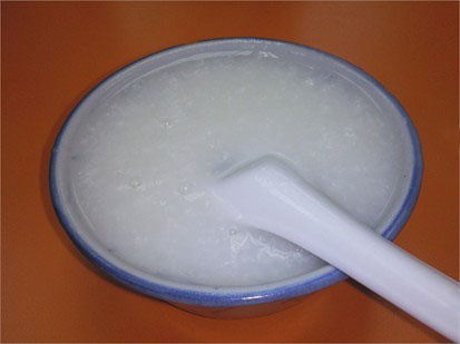 大米淘洗干净后加入适量油和盐(花生油、色拉油均可)拌匀腌制30分钟,这样做是因为油吸附能量的本领比水要大得多。当米粒沾上了油以后,沾油的部位可以在短时间内集聚超过水温很多的热能,这样米粒下锅后就能快速开花,这是熬粥最关键的“要诀”。同时,用油和盐将大米腌制后可使煮出的粥味更香滑。