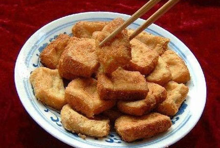 3.臭豆腐 危害度:★★★★☆公众喜欢度:★★★关键词:硫酸亚铁 明矾 垃圾堆。罪状揭露:化工用硫酸亚铁染黑豆腐。