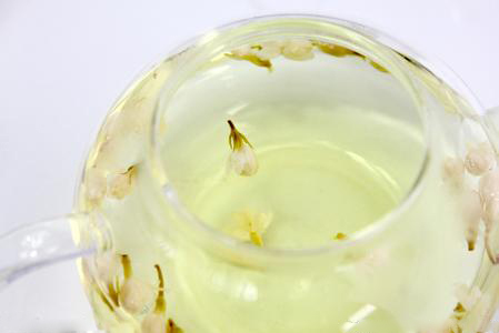 高档花茶的泡饮,以选用透明玻璃盖杯为佳,取花茶3克,放入杯里,用初沸开水稍凉至90℃左右冲泡,随即盖上杯盖,以防香气散失。