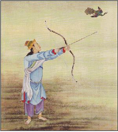 动画版的《雍正行乐图》射箭图。图/@故宫淘宝