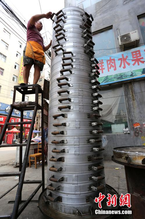 郑州馒头店摞30层蒸笼路边蒸馒头