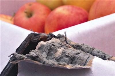 近日,记者调查发现,一些果品批发市场商贩使用“加重纸箱”包装苹果,此种箱子类似此前被频频曝光的“水泥纸箱”,只不过因批发市场严查,纸箱夹层中的水泥块被换成了木浆或纸浆。