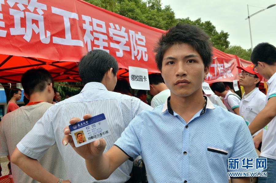 新华社照片,南昌,2014年9月3日 “夺刀少年”柳艳兵迎来大学生活 9月3日,柳艳兵在寝室整理物品。当日中午,江西宜春“夺刀少年”柳艳兵来到南昌大学新生报到处,经过身份核实、填写入学报到表完成报到手续,正式成为南昌大学建筑工程学院土木工程专业的一名学生,迎来崭新的大学生活。 5月31日,在宜春市区至袁州区金瑞镇的一辆中巴车上,一名歹徒将高三学生柳艳兵及其同学易政勇等5名乘客砍伤。当歹徒继续举刀要伤及更多乘客时,柳艳兵不顾自身被砍剧痛,上前夺下歹徒手中的刀,易政勇在解救乘客时再度被砍伤。事发后,二人因伤情严重,错过了高考。7月2日至3日,柳艳兵、易政勇参加了单独高考考试,而后分别被南昌大学和江西财经大学录取。9月1日江西宜春市政府在宜春三中为“夺刀少年”柳艳兵和易政勇举行了欢送仪式,并为其颁发了助学慰问金。两人各获5万元的各界捐助。新华社记者宋振平摄