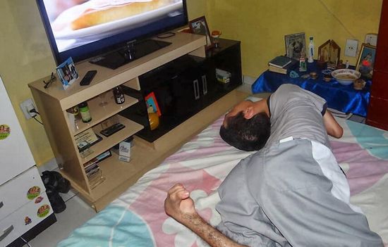 虽然克劳迪奥的身体条件不允许使用轮椅,加大了他独立出门的难度,但他还是恳求母亲让自己出去上学,和其他孩子一起学习。图为37岁的巴西男子克劳迪奥-维埃拉-奥利维拉。