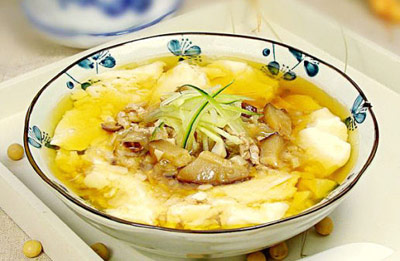 比例适当的豆浆做出的豆腐脑儿就跟小时候吃的一个味道,很浓厚的豆香味。做老北京卤汁豆腐脑,浇料也很关键。一般用到口蘑,香菇,羊肉,猪肉丝,生抽,香油,基本原料,也可以按你的喜好添加