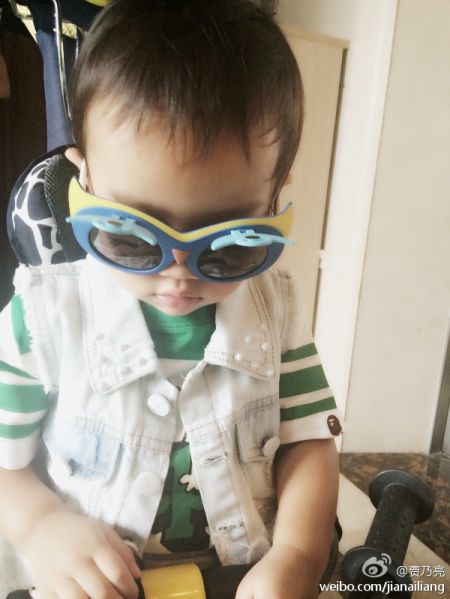 9月11日天气好,馨爷打算出去转转,出门前贾乃亮给她拍照并晒在微博上,照片中馨爷一如往常地穿上帅气的男孩子衣服,戴着快要遮住脸的大墨镜,面无表情,低着头傲娇不理镜头后的爸爸。