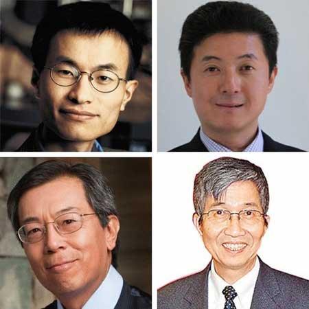被预测可能获奖的四位华人科学家:杨培东(左上)、张首晟(右上)、钱泽南(左下)、邓青云(右下)。