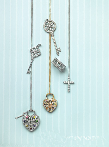 Tiffany Keys18K白金镶钻吊坠(左、左上)