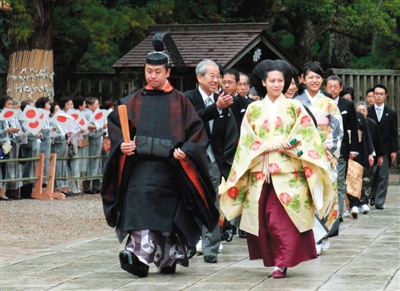 日本皇室高圆宫宪仁亲王次女典子与出云大社的权宫司千家国麿5日上午举行结婚典礼的地点,正是两人的相识地——出云大社。