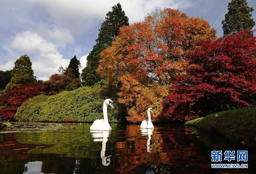 一叶落知天下秋。从枝头那一片落叶开始,秋天就这样走进了我们的视线。2012年10月17日,在英国南部的设菲尔德公园,两只天鹅在倒映着红叶的湖面上戏水。 新华社/路透