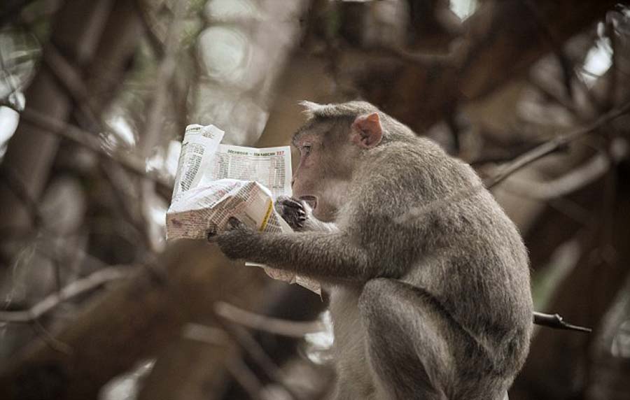 这些令人感到滑稽的照片均为28岁软件工程师巴瓦尼·古查(Bhavani Gucha)拍摄。他说,访问该植物园的游客经常将水果包在报纸中喂猴子,但他从未看到猴子对新闻报纸做出这种有趣的回应。古查说:“猴子是我非常喜欢拍摄的动物,因为它们的面部表情很丰富,也很有特色。”